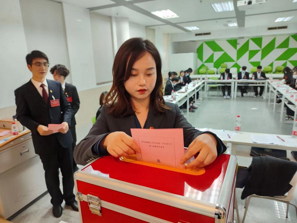随后,代表团成员返回主会场参加大会选举,充分行使代表选举权。大会选举出共青团太阳成城集团tyc234cc第三届委员会委员,我院团委书记洪迪当选。闭幕式上,党委常委、组织部长郑俊对学校共青团工作提出了要求和希望。学校第三次团代会在悠扬的校歌声中圆满闭幕。