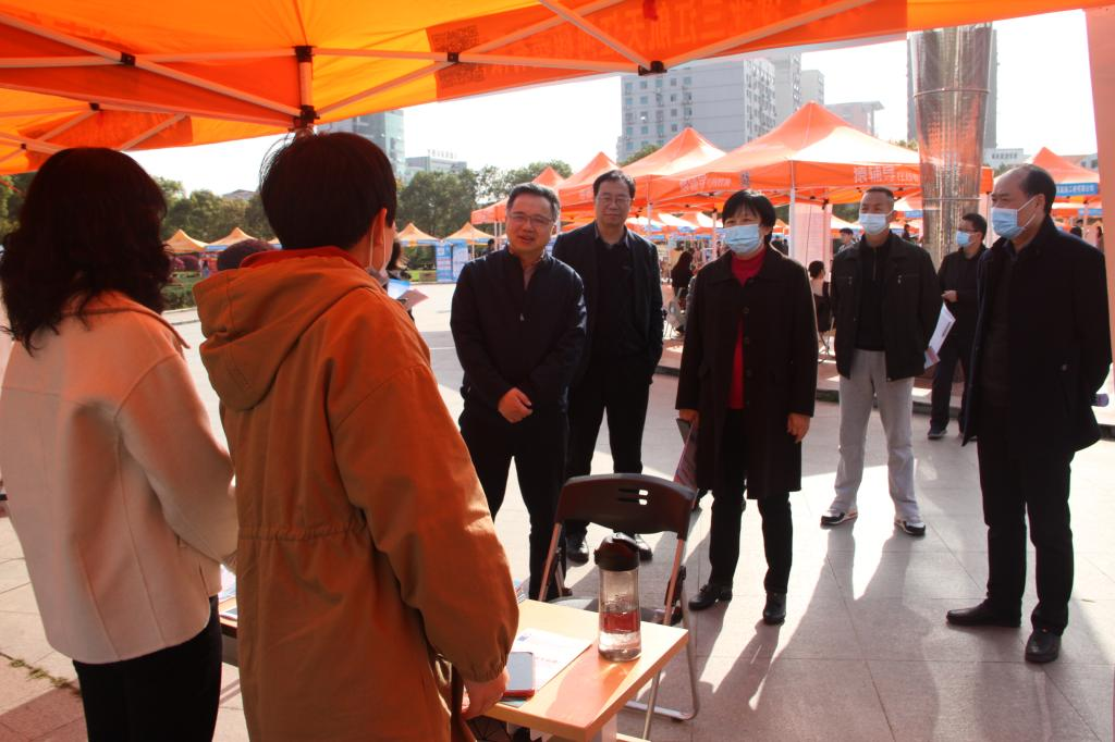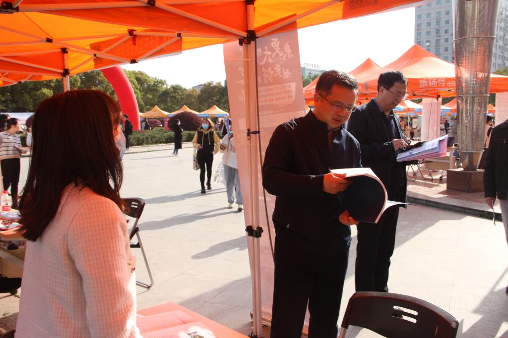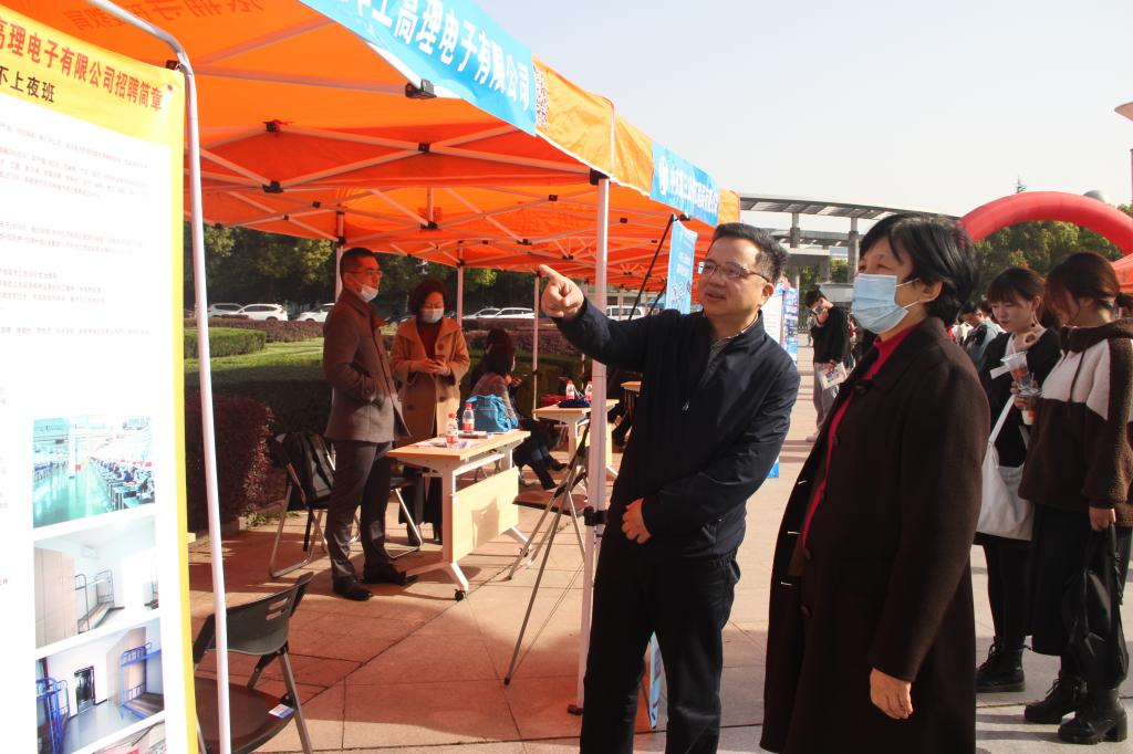 校长潘慧明现场指导就业工作,了解用人单位招聘需求和我校毕业生目前的就业情况。