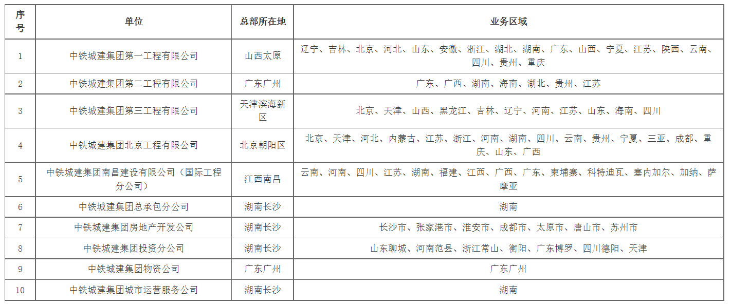 中铁城建集团有限公司前身是铁道兵,现为世界500百强企业中国铁建旗下大型建筑企业集团,是集设计、施工、投资、开发于一体的城市综合建设运营商。集团拥有建筑特级(2项)、铁路一级、市政一级等施工总承包和专业承包资质40余项。业务涵盖房建、市政、轻轨、公路、铁路、装修装饰、机电安装、地基基础、钢结构、幕墙、消防、园林、环保、建筑智能、机场、地铁以及建筑设计、土地开发运营等众多领域。