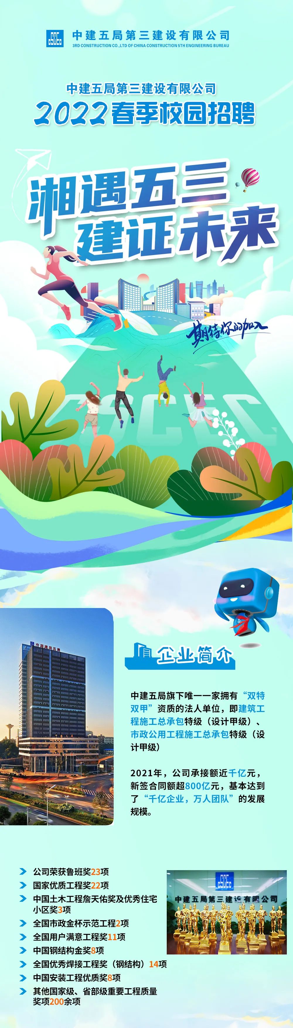 中建五局第三建设有限公司2022届校园招聘简章