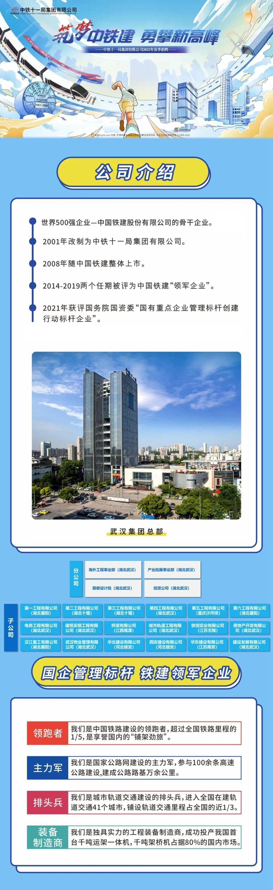 中铁十一局集团有限公司2022届校园招聘简章