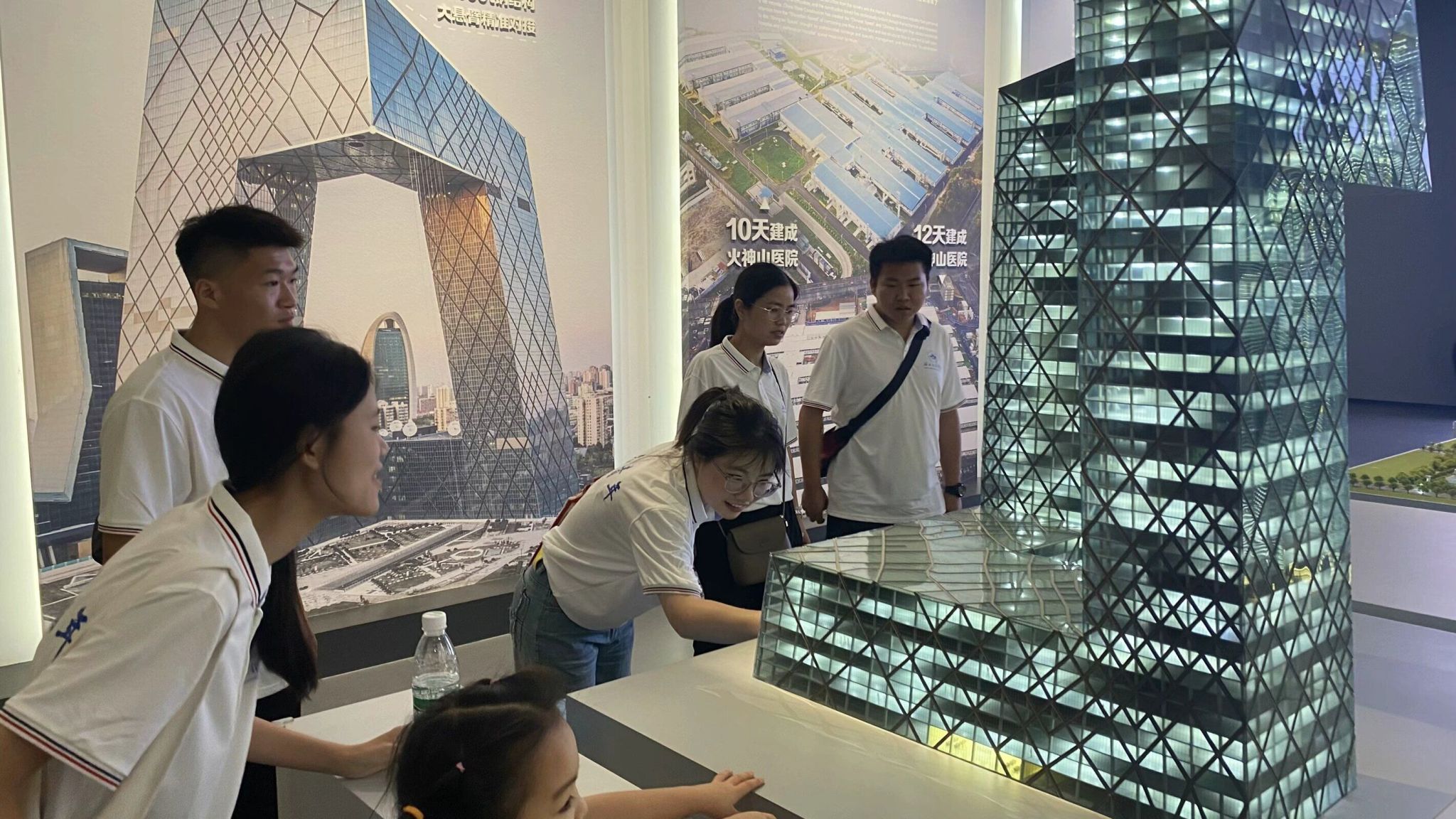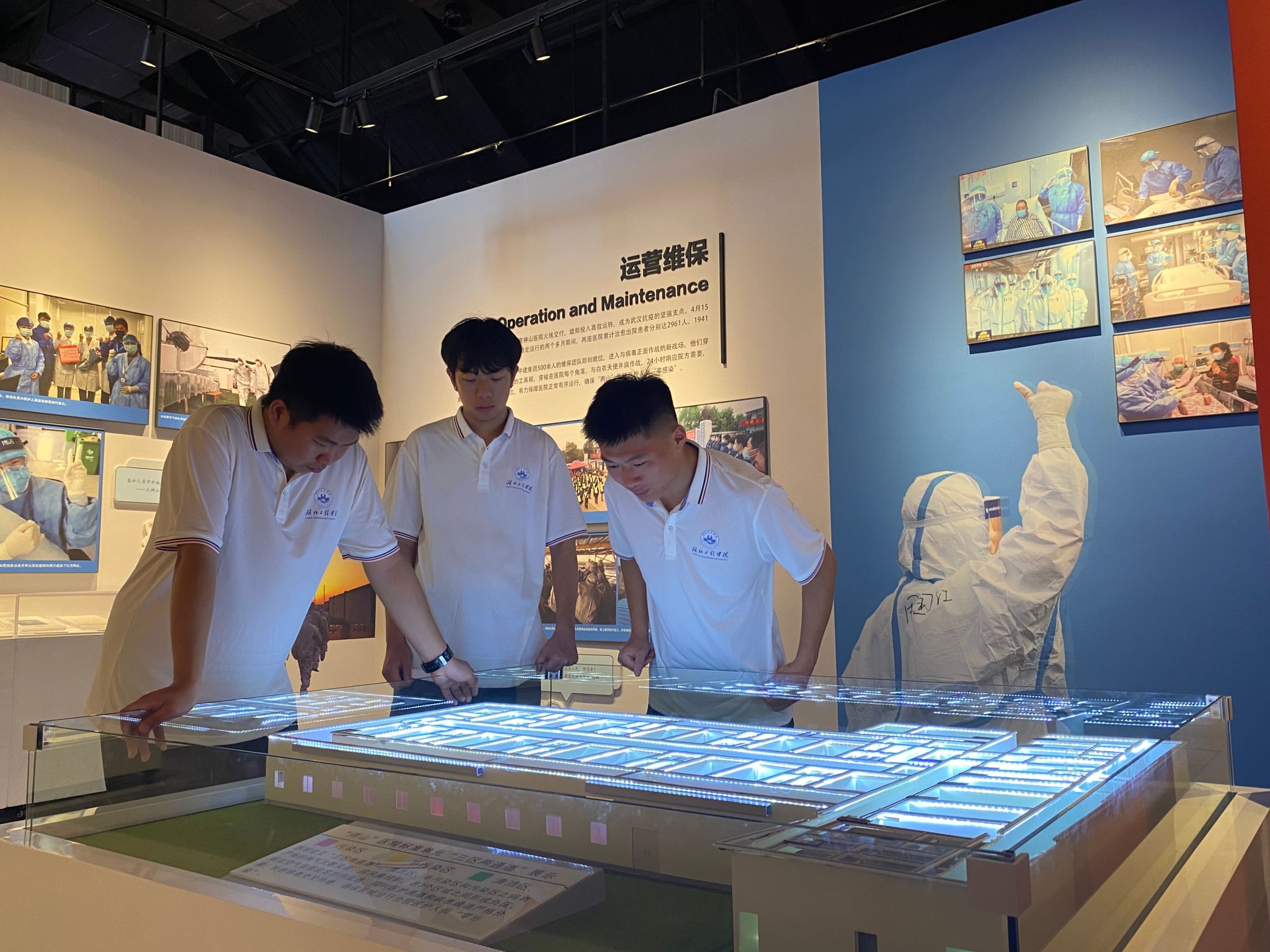期间,师生一行还参观了中国建筑科技馆旁的“火神山·雷神山建设纪实展馆”,该馆以“平凡英雄创造中国速度”为主题,再现了在党中央领导下“英雄的城市、英雄的人民”同心战疫的恢宏场景,展现了社会主义制度优越性迸发的磅礴伟力和“生命至上、举国同心、舍生忘死、尊重科学、命运与共”的伟大抗疫精神。面对一帧帧光影、一幅幅影像、一件件实物,一个个医院模型,在讲解员生动详细的讲解下,同学们纷纷感慨“英雄之城”武汉的涅槃重生,感谢平凡伟大的“最美逆行者”,感叹党员先锋队在危机时刻爆发出来的磅礴力量。