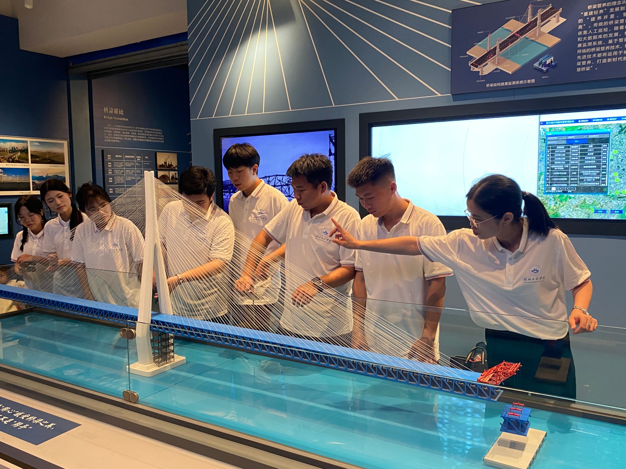 为深入学习宣传贯彻习近平新时代中国特色社会主义思想和党的二十大精神,引导青年学生感受建筑魅力,传承工匠精神,坚定文化自信。7月6日,我院组织开展了“探索建筑之美,筑梦强国之路”暑期社会实践活动,学院分团委书记洪迪、辅导员汪颖、土木工程专业肖聪老师带领6名学生干部代表赴武汉中国建筑科技馆和中国桥梁博物馆,共同上了一堂“行走的思政课”和“一线的专业课”,通过参观学习、现场教学、亲身体验,让学生感受中国建筑桥梁的深厚底蕴与新时代的发展脉搏。