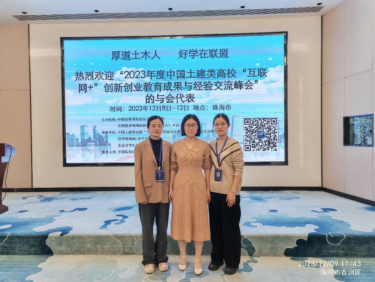 为提升新工科人才培养质量,推进我院大学生创新创业教育工作,我院教师吴静、肖聪于2023年12月8日至12日,在广东珠海参加了由中国建筑类院校技术发展联盟举办的2023年度中国土建类高校“互联网+”创新创业教育成果与经验交流峰会。