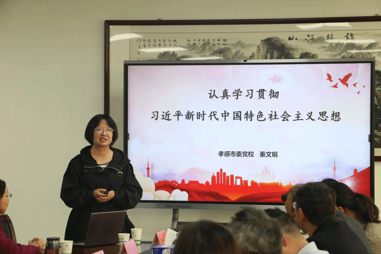 首先,市委党校宣讲团成员秦文娟教师以《认真学习贯彻习近平新时代中国特色社会主义思想》为题,从认识习近平新时代中国特色社会主义思想的时代背景、理解习近平新时代中国特色社会主义思想的科学体系、把握习近平新时代中国特色社会主义思想的实践要求三个方面阐释了习近平新时代中国特色社会主义思想。
