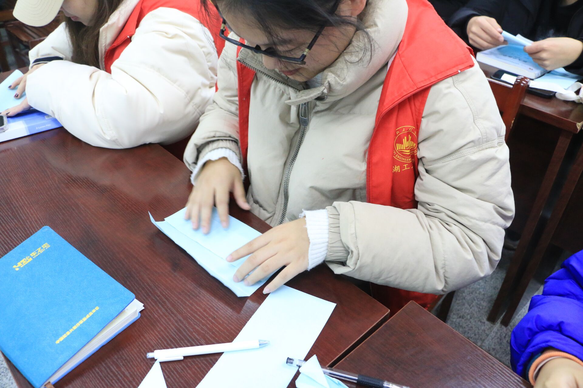 在听完讲解之后,活动负责人组织大家学习折和平鸽,让大家明白和平生活来之不易,落后就要挨打,国强才能民安。