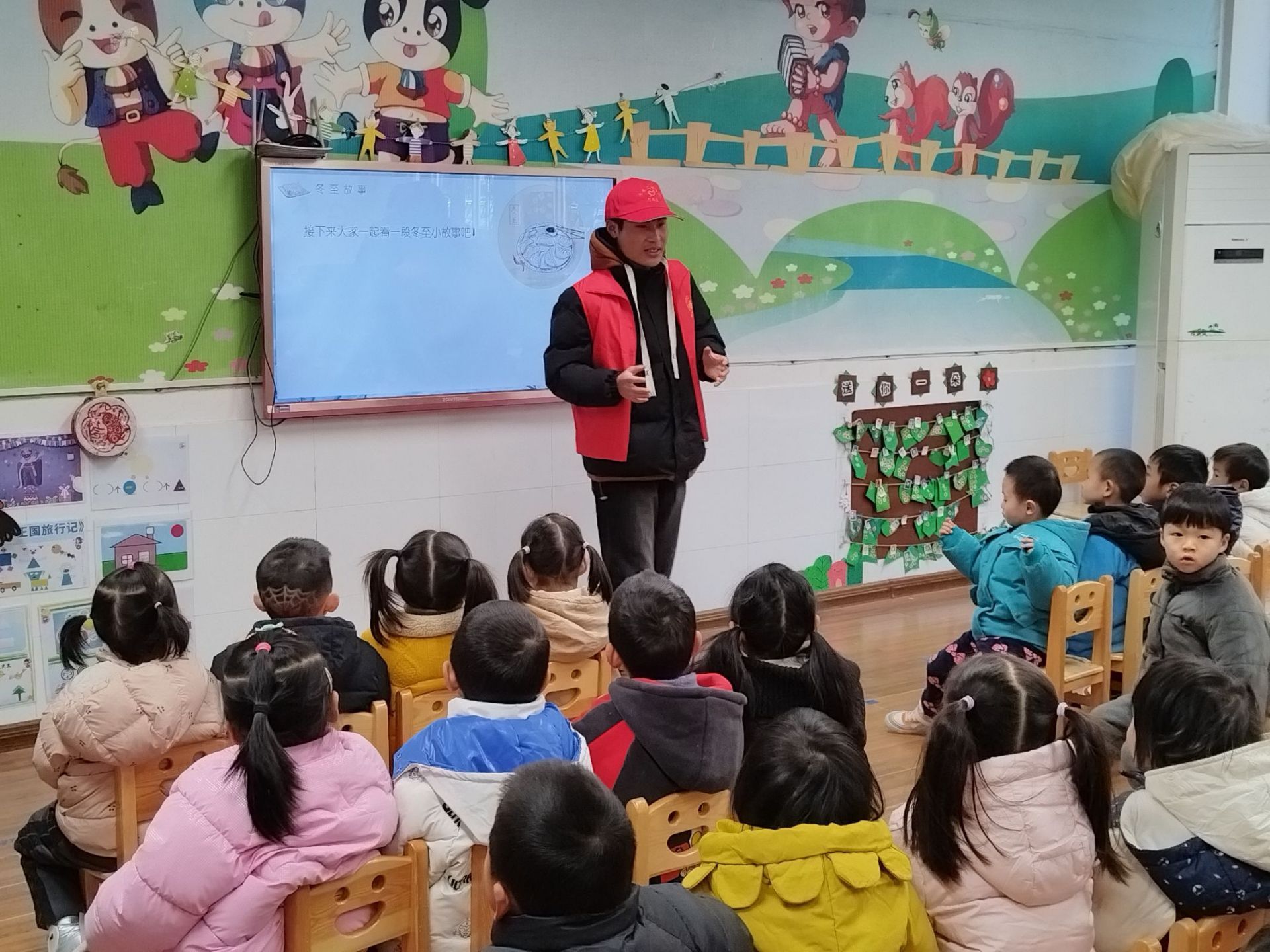 讲冬至故事环节:志愿者向小朋友讲述冬至故事,小朋友们了解了冬至的来历和习俗。