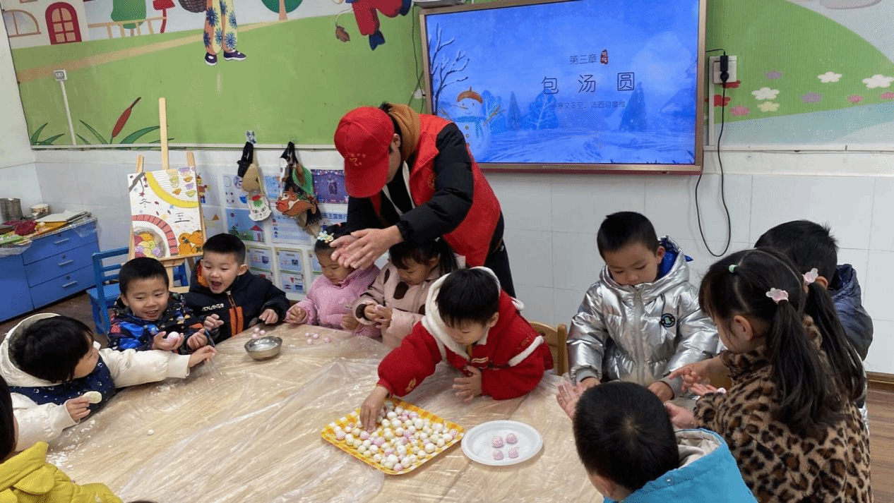 为了将中国传统文化带进校园,在让小朋友体验动手的乐趣的同时,了解冬至的来历、感知传统文化的魅力,12月21日上午,太阳成城集团tyc234cc民族学生青年志愿者在冬至日到来的前一天,在孝感市直属机关幼儿园开展了“岁寒又冬至,汤圆迎童稚”的活动。