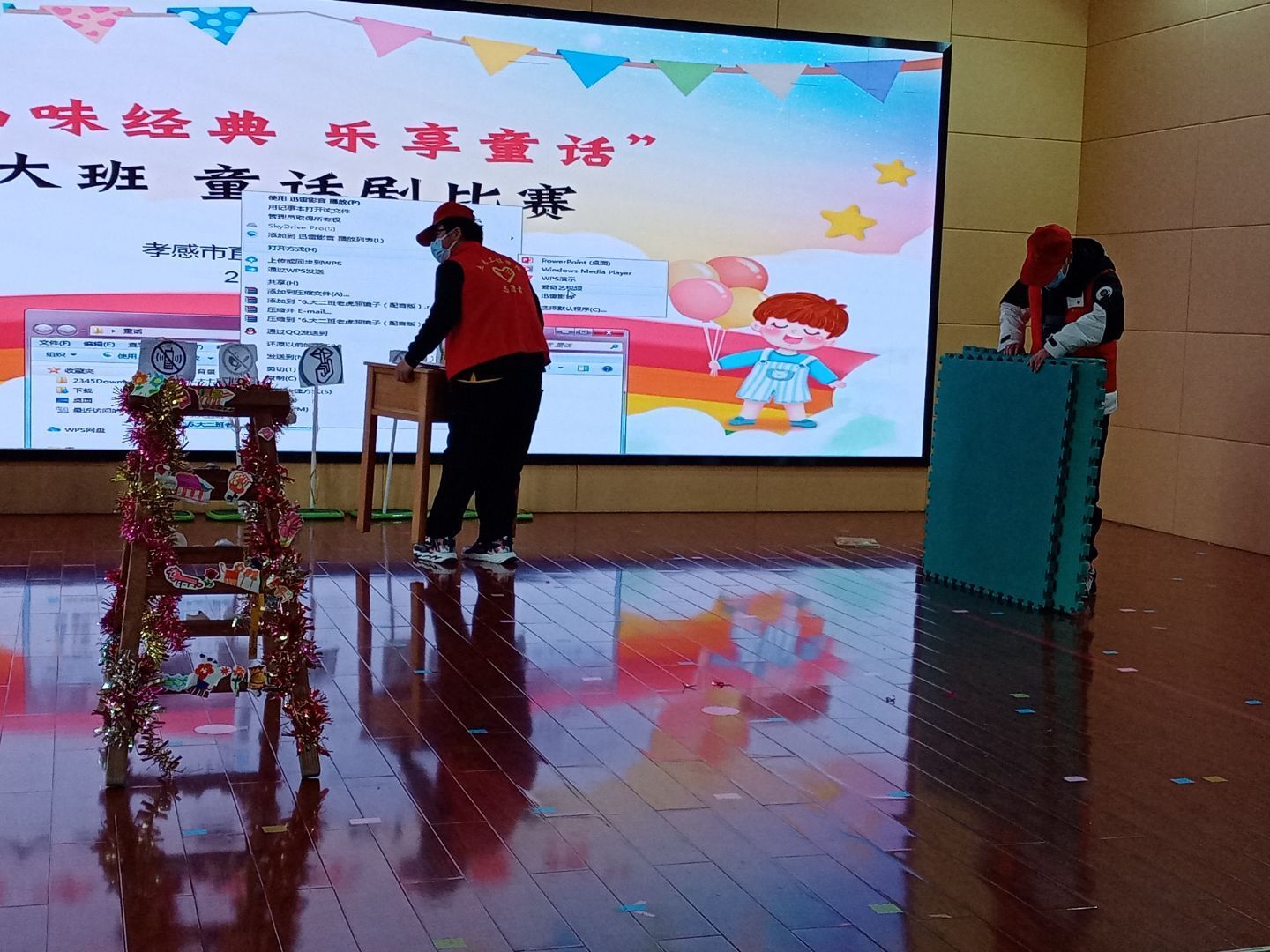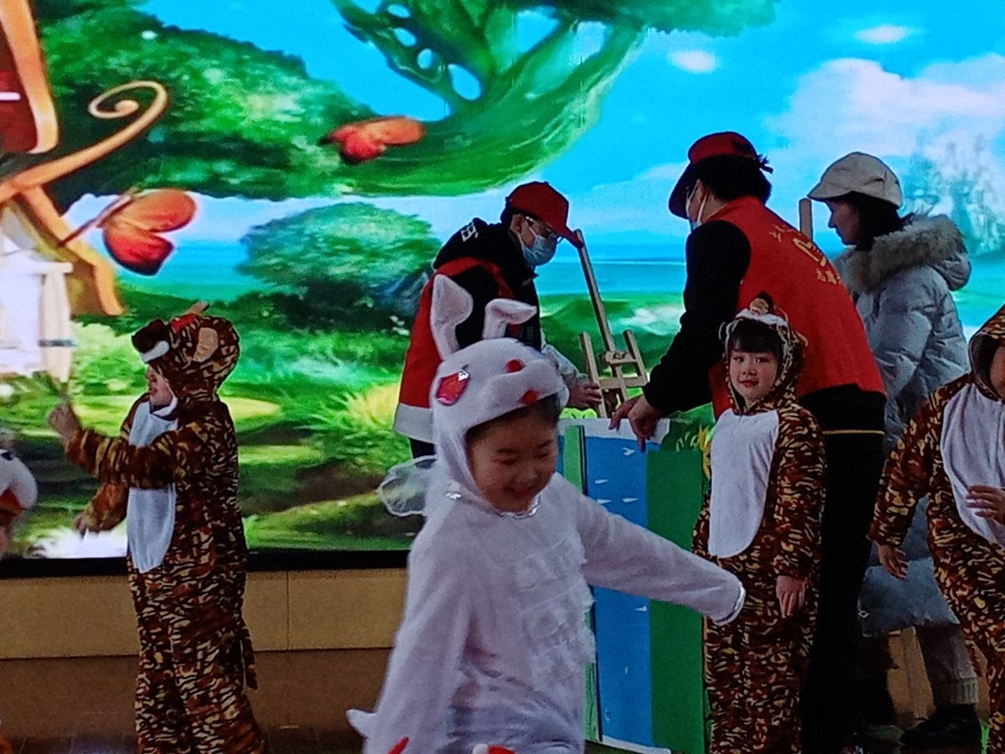 话剧表演志愿服务:大学生志愿者帮助布置、收拾话剧场地,在话剧表演时,在台下拍摄话剧视频,同时维持着场内秩序。小朋友的表演非常精彩、有趣,进展也很顺利,快乐的氛围笼罩着在场每一个人。